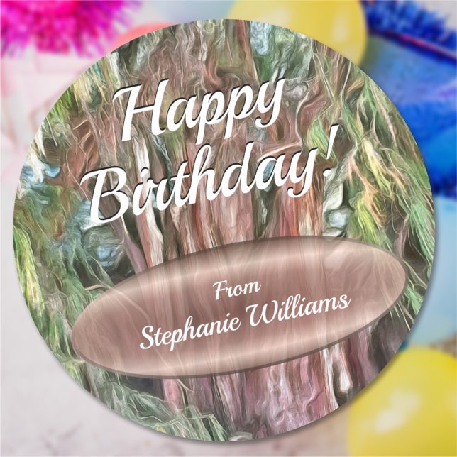 Happy Birthday Tree of Tule Oaxaca OAX1 Classic Round Sticker