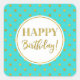Happy Birthday Turquoise White Gold Dots Square Sticker