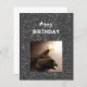 Happy Birthday. Tuxedo cat with a rose on a black background.