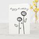 Happy Birthday Two Flowers Simple Line Drawing Card