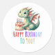 Happy Birthday Typography Cute Dinosaur Classic Round Sticker