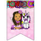 Purple and Pink fairies and Unicorns whimsical folk art banner for a little girl's birthday party.