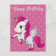Colourful cartoon unicorn with pink background and white hearts. Great card for unicorn lovers.