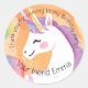 Adorable unicorn sticker for any birthday party! Purple, pink and orange - bright and fun sticker for all your party needs.