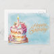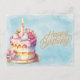 Happy Birthday Watercolor Cake with Flowers Postcard