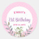 Happy Birthday White Snowdrops Pink Polka Dot Classic Round Sticker