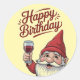 "Happy Birthday" Wine-Toasting Gnome Classic Round Sticker