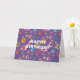 This Happy Birthday card with this floral art pattern will bring a smile on anyone on their special day. Colourful flowers with blue, pink, yellow, orangel and purple. Original art by fine artist and graphic designer Inge Lewis. Shop for matching products at ingeinc.com online store | boutique.