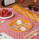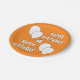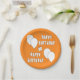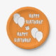 A paper plate with a Happy Birthday and Balloons on an orange background. Customise the orange background among other options.