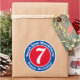 Happy birthday sticker, which is decorated with the name of the recipient, the message "Happy Birthday" and the child's age - 7 years old. Birthday present stickers.