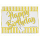Happy Birthday Yellow/White Simple Stripes Pattern Large Gift Bag
