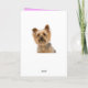 Brighten someone's special day with a Yorkie puppy birthday card! This cute canine card features an image of a Yorkshire Terrier pup with a birthday greeting printed in sweet pink font highlighted against a crisp white background.