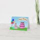 This cute Yorkie who is wearing a pink party hat is surrounded by colourful balloons, wrapped presents, and a decadent three tier pink chocolate cake decorated with dog bones and paw prints, this card is perfect for dog lovers.
