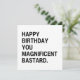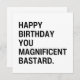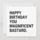 Funny "Happy birthday you magnificent bastard" is a minimalist text design with simple sans serif font. This hilarious birthday greeting makes a nice gift for anyone celebrating a birthday and loves cheeky designs.