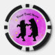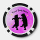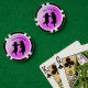These poker chips have a two happy black bears dancing together with strings of golden shiny stars on a mix of light and dark pink. Customise your text with the templates.
