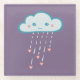 Happy Blue Rain Cloud Raining Pink Hearts Glass Coaster