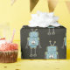 Cute and fun wrapping paper design aimed at kids. Features a repeating pattern of happy blue robots against a dark background. Perfect to wrap gifts for a robot mad child. Copyright © Lisa Marie Robinson. All rights reserved.