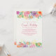 This colourful floral invitation features a wide spectrum of colours and a variety of blooms in a top and bottom matching border. Suitable for any feminine celebration.