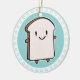 A kawaii slice of white bread in watercolours on a patterned plate.