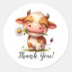 Happy Brown Cow with Flower Thank You Classic Round Sticker