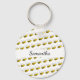 Decorated with happy, smiling yellow and black bumble bees. A chic white background. Personalise and add a name. The name is written with a modern hand lettered stylie script.