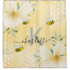 Happy bumble bees yellow honeycomb monogram script shower curtain