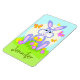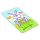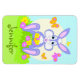 A happy cute cartoon bunny with bright butterfly friends and colourful flowers. You can personalise this magnet with your child's name or other text as desired. Use the "customise" feature to change font size, colour or style if you like. Have a happy day!