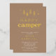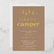 Introducing our delightful "Happy Camper" gold foil baby shower invitation, perfect for celebrating the arrival of your little one.