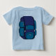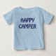 A graphic backpack image on a infant (any) t-shirt. The t-shirt has the text "Happy Camper" on the front.