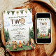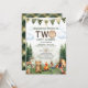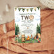 Set against a backdrop of lush woodland pine trees a rustic campfire and a cosy tent, this invitation captures the essence of a whimsical forest adventure. Whether you're hosting a backyard campout or a woodland-themed party, this invitation will surely delight your guests and set the stage for a fun-filled day of celebration.