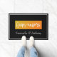 Happy campers RV or cabin door mat, orange yellow rectangle with white script on a black background. Just personalise it with any name or names using the "personalise" button.