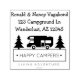 Simple RV truck camper camping design self-inking return address stamp for travelers, hikers, retired couples and outdoorsy types. Reads HAPPY CAMPERS below name and address and LIVING ADVENTURE in all capital letters. Cute retirement gift for man or woman.