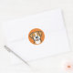 A clean, flat-style vector illustration of a happy dog's face centered within an orange circle.