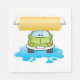 A happy green car going through the car wash. This design looks really effective on these Paper Napkins