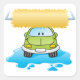 A happy green car going through the car wash. This design looks really effective on these Stickers