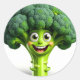 Happy Cartoon Broccoli Character With a Fun Classic Round Sticker
