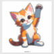 Playful orange cat character raises its paws in a joyful pose against a clean white backdrop. Ideal for kids, cards, banners, and branding needing friendly, approachable imagery.