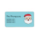 Happy Cartoon Santa Claus Head On Blue And Text Label