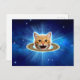 Happy cat in space. postcard