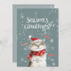 Happy cat is enjoying the Christmas holiday season so much, saying "Meow, Season's Greetings". Just right for sending to your cat lover friends. All of the text can be edited, On the front, for example, you may prefer "Merry Christmas" or "Happy Holidays". Be sure to change the example "from" names and date to those you want. This cute and cheery retro design is from a vintage watercolor. We love the satisfied look and happy squeezed eyes of the purring kitty, and hope you do too.