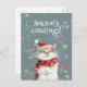 Happy cat is enjoying the Christmas holiday season and says "Meow, Season's Greetings". Such a nice way to send a post card to your cat lover friends. All of the text can be edited, For example, you may prefer "Merry Christmas" or "Happy Holidays". Be sure to change the example "from" names and date to those you want. This cute and cheery retro design is from a vintage watercolor. We love the satisfied look and happy squeezed eyes of the purring kitty, and hope you do too.. You can delete the "meow" entries, or edit, or keep them.
