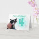 Painting of the number four in green with pink swirl ribbons, with a photo of our black and white tuxedo cat wearing a pink and white dressed, with the greeting, Happy Birthday, is printed on custom greeting cards. Thank you for shopping CherylsArt on Zazzle: http://www.zazzle.com/CherylsArt*/