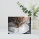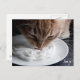 Postcard with a photo of a cat licking cream. The words join us in one corner. Customisable.