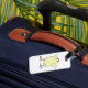 I was happy with the acrylic tag but it came with a thin leather strap to attach the tag to luggage (like a cat collar). I replaced the strap with a metal ring off of a key ring as the leather strap would come undone or break easily as luggage is sometimes handled without much care by airlines. Printing is great. Colours and positioning of the design I put on the tag were perfect. Very pleased.