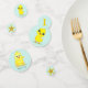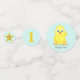 Happy chick with star on light blue Party table confetti. Text ready to be personalised. Ideal for baby shower, first year birthday and more.