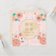 Greeting Card. Chinese New Year. Traditional lunar year background with elegant gold frame, pink peony, blossom sakuras, lanterns and Spring flowers, peacock, traditional ornamental peach colour background. Happy 2025 Chinese New year text, Fortune luck symbol, red pattern, paper art style. Trendy Design with text template, for Invitations & Stationery > Greeting Cards.