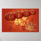 Happy Chinese New Year with Red Lanterns and Dragon with Red Packet on Blurred and Bokeh Background