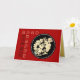 Custom 2020 + Happy + Year of the Rat + golden rat and grapes paper-cut (model n°4) into a black circle with dark red background (in front) and golden textured image as background (inside). You can easily change text (font colour, size and position) if you want by clicking the customise button. Design on horizontal greeting card. Available with other rat paper-cut designs.