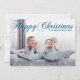 Elegant Happy Christmas photo card with beautiful cursive script in winter blue. This modern holiday family photograph card features gorgeous typography and your name in over the full bleed picture. Add a 2nd festive photograph to the back of this chic card.