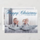 Happy Christmas Blue Elegant Cursive Script Photo Holiday Card